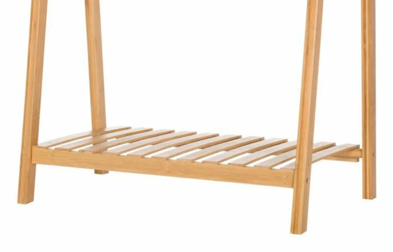 Tyylikäs ja elegantti 4Living 1-hyllyinen bambuvaaterekki on sisustuksellinen ratkaisu vaatesäilytykseen. Pinta on lakattu vesipohjaisella lakalla. Vaaterekki on kokoontaittuva, joten se on helppo säilyttää pienessä tilassa. Enimmäiskantavuus on 10 kg.