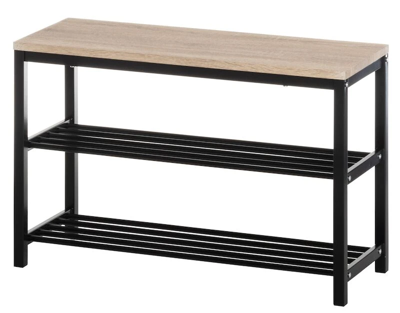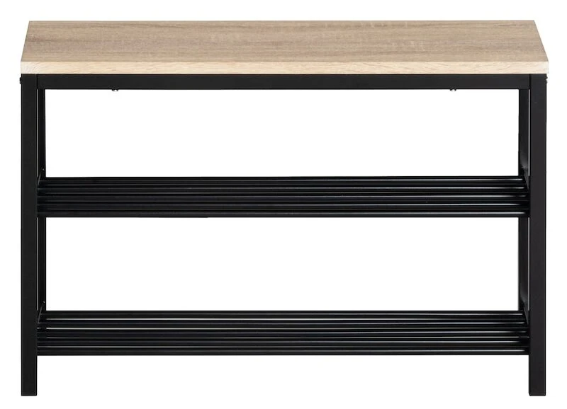 Erittäin tyylikäs ja käytännöllinen kenkäteline / penkki jolle on mukava istahtaa laittamaan kengät jalkaan. Penkissä on kaksi tasoa kenkien säilytykseen. Penkin runko on terästä ja kansi MDF:ää. Penkin syvyys on 30 cm, joten se sopii pieniinkin tiloihin.