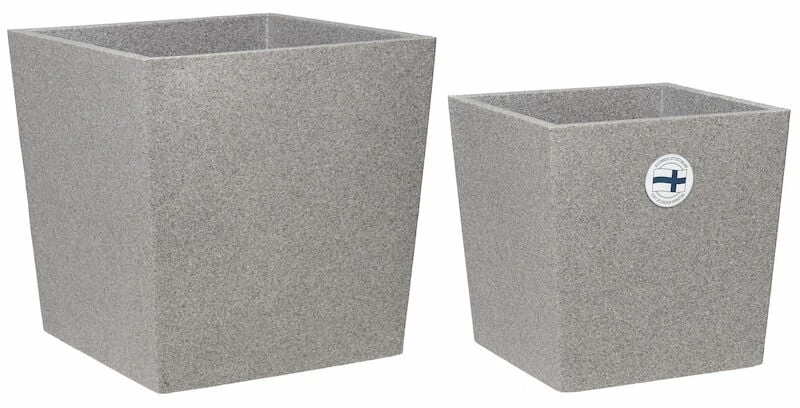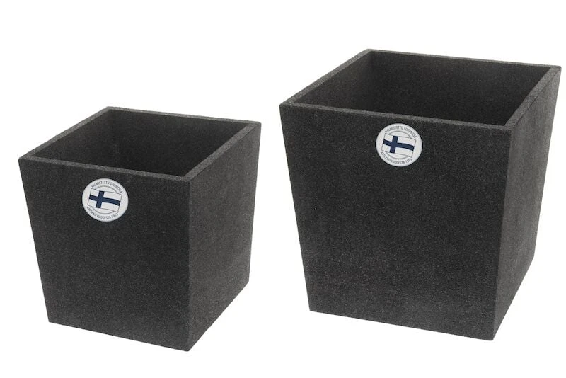 Kotimainen Cubic termoruukku sopii erinomaisesti monivuotisille kasveille terassille ja puutarhaan. Kestää haurastumatta ja haalistumatta niin kuumassa auringonpaisteessa kuin kovassa pakkasessa. Kesällä kasvualusta pysyy kosteana ja viileänä, talvella ruukun paksu seinämä suojaa kasvin juuristoa jäätymiseltä. Materiaali on myös elintarviketestattu, joten soveltuu hyvin myös yrttien tai muiden syötävien kasvien kasvattamiseen. Setissä kaksi erikokoista ruukkua: pienempi 39x39x39cm ja suurempi 48x48x48cm. Materiaalina on solupolypropeenimuovi. Ruukkua voi käyttää sisä- ja ulkotiloissa, mutta sen tulee olla talvella kuiva ja tyhjä, jotta se ei halkea.