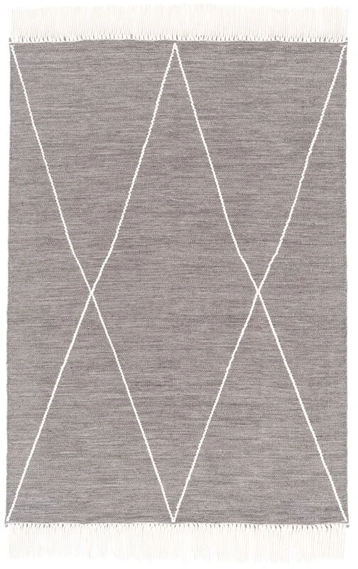 Tyylikäs villamatto pitkillä hapsuilla. Rentouttava kuvio sopii hyvin kodin oleskelutiloihin.