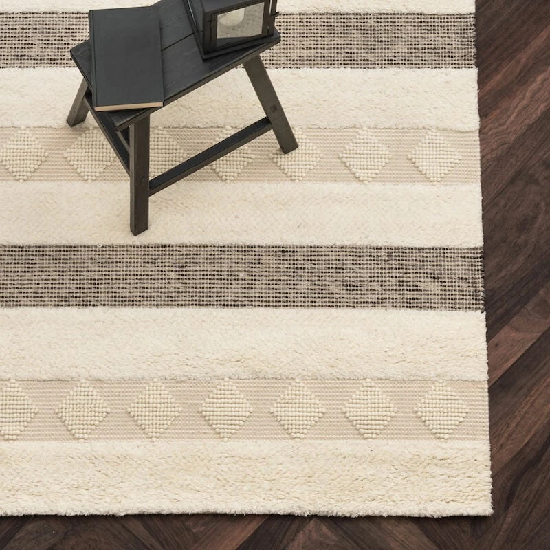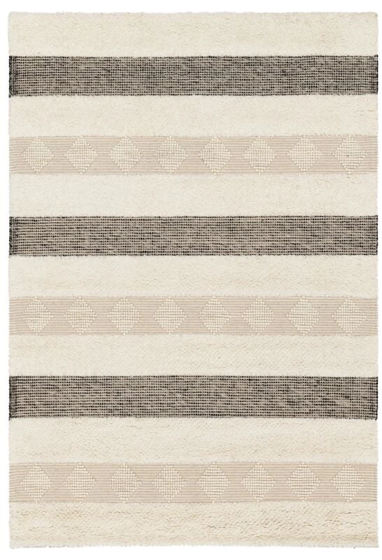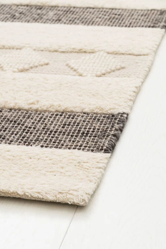 4Living Oktavia villamatto on villan 60% ja puuvillan 40% yhdistelmä. Matto on ihanan pehmeä ja siinä on kudottu salmiakki kuosi. Kauniit luonnonläheiset valkoisen ja harmaan sävyt tuovat harmoniaa sisustukseen.
