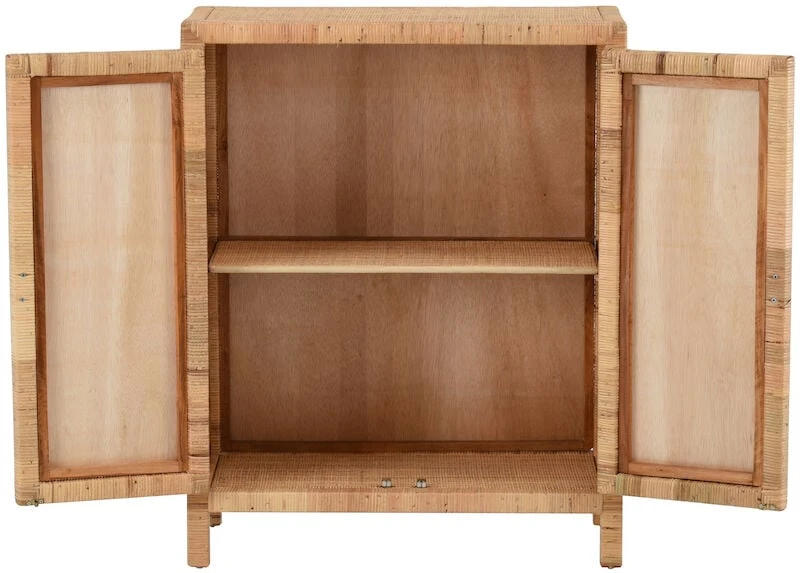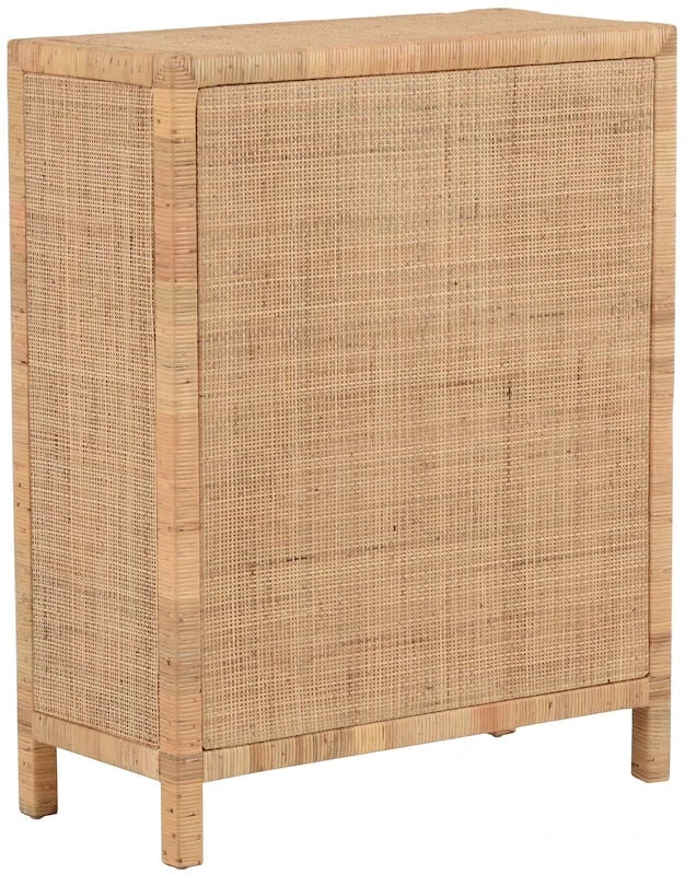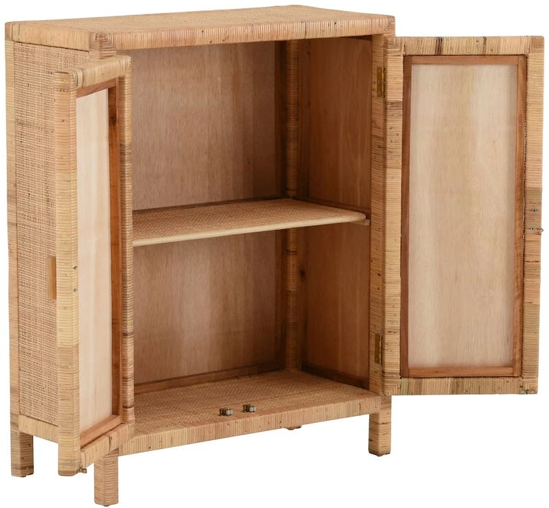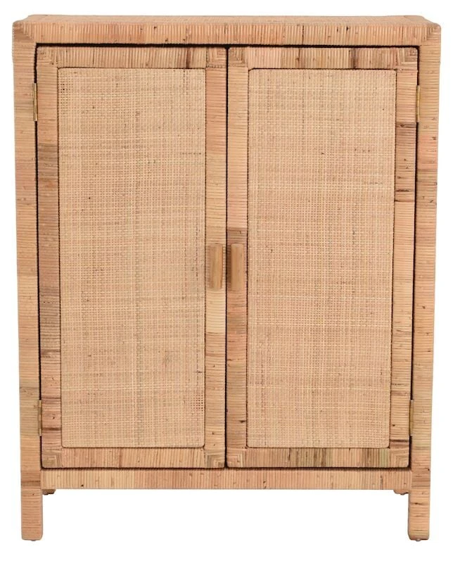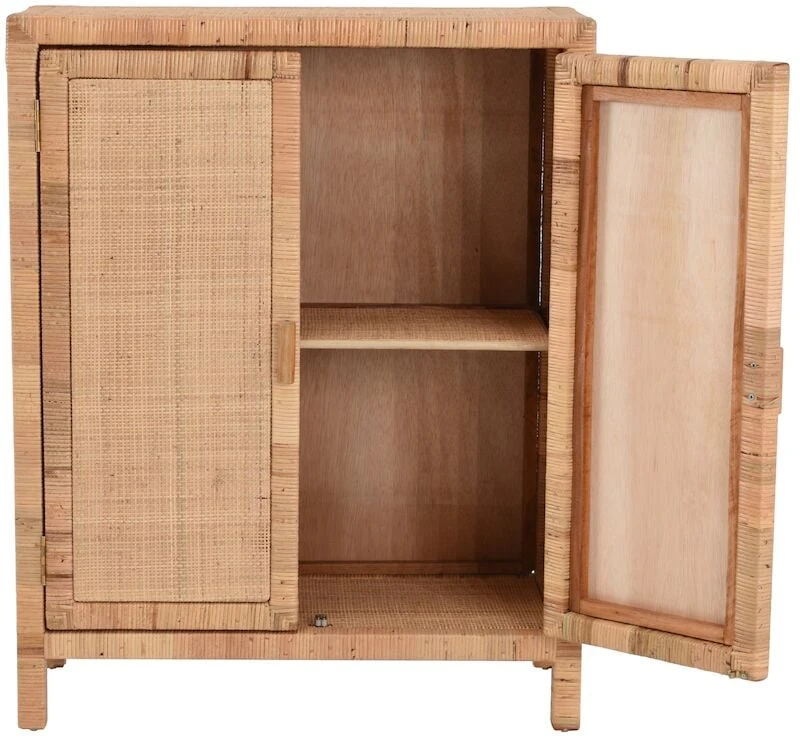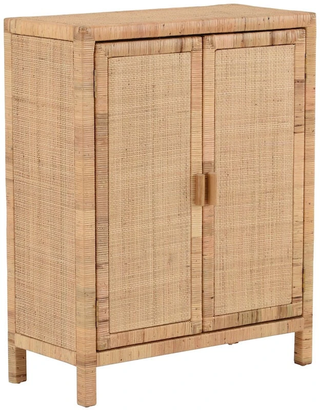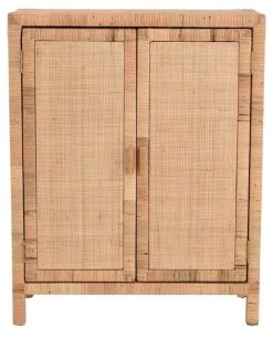 Kaunis, luonnonläheinen Marbella rottinkikaappi kahdella ovella. Kaapin runko on valmistettu puusta ja punos aidosta luonnonvärisestä rottingista.