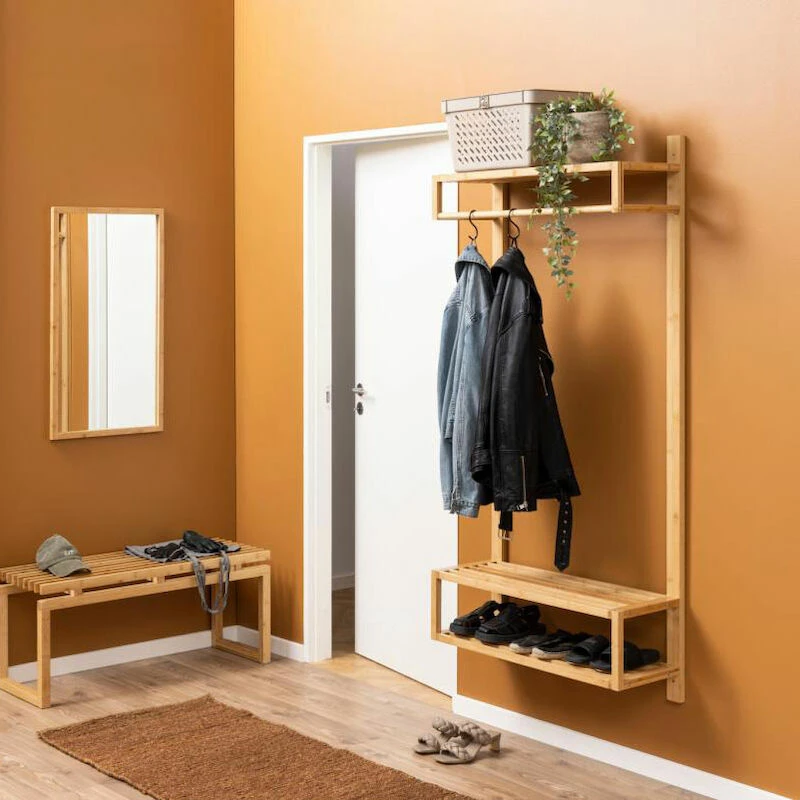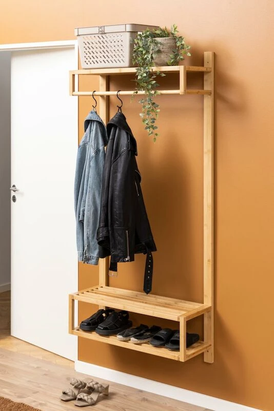 Tyylikkäällä Bali vaatetelineellä eteisesi pysyy järjestyksessä. Materiaalina on bambu, joka tuo lämintä hehkua sisustukseen. Telineessä on kolme hyllyä ja vaatetanko.