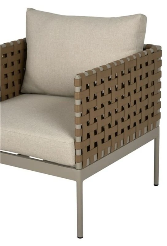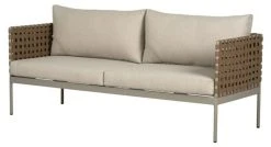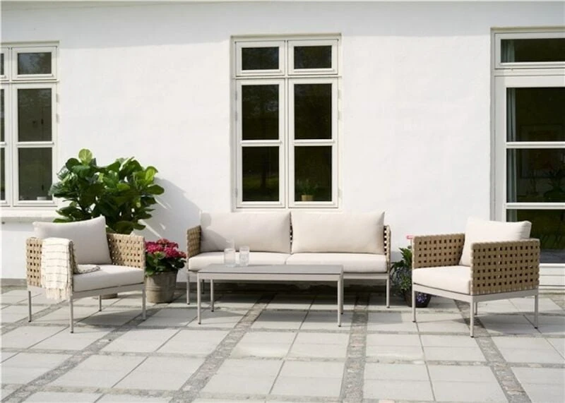 Tyylikäs Envy Dicte sohvaryhmä sisältää kaksi nojatuolia, sirokokoisen sohvan sekä sohvapöydän. Sohvapöydässä on spraystone-kansi, joka on sekoitus jauhettua luonnonkiveä ja korkealaatuista hartsia ruiskutettuna lasilevylle. Lasikannen pinta näyttää siis kiveltä. Sohvaryhmän vaaleus ja maanläheiset sävyt luovat harmonisen kokonaisuuden. Tyylikkäänä yksityiskohtana sohvassa toimii polyrottinkiset, punotut käsinojat. Sohvaryhmän runko on kestävää ja kevyttä alumiinia. Pehmusteiden päälliset ovat kehrättyä polyesteriä. Pehmusteet on suositeltavaa suojata sateelta.