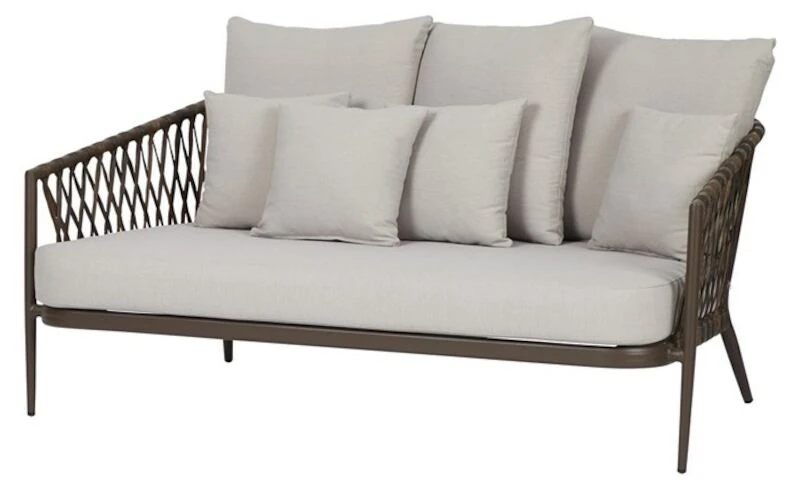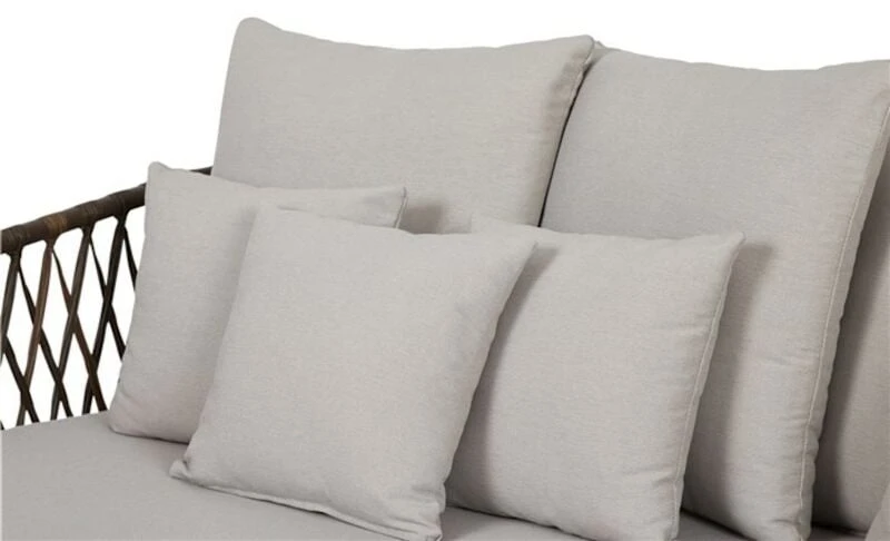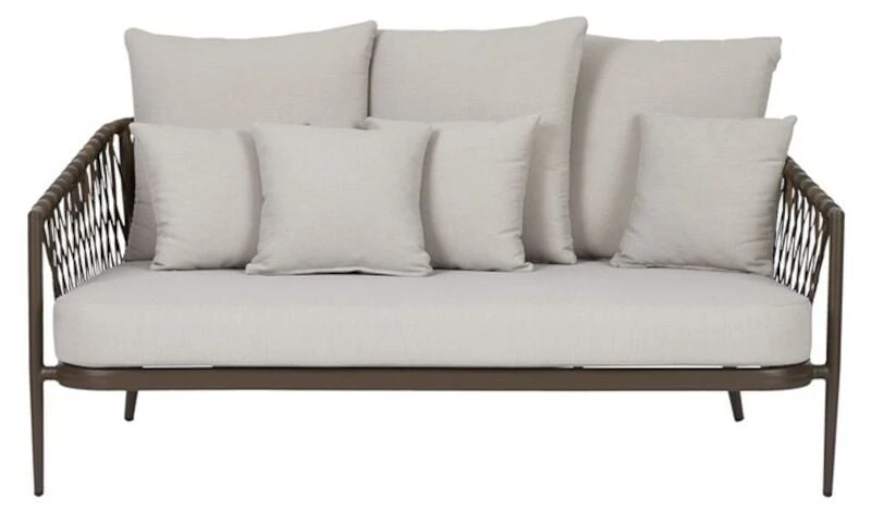 Envy Harvey on siro 3-istuttava sohva, jossa on kestävä alumiinirunko. Kaunis ruskean sävyinen polyrottinkipunos ja runsaat hiekan väriset pehmusteet luovat harmonisen kokonaisuuden kesäpäivien viettoon. Tyynyjen päälliset on verhoiltu ulkokäyttöön soveltuvalla polyester-kankaalla, mutta ne on suositeltavaa suojata sateelta.