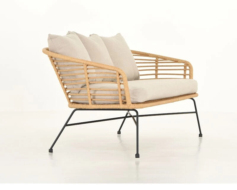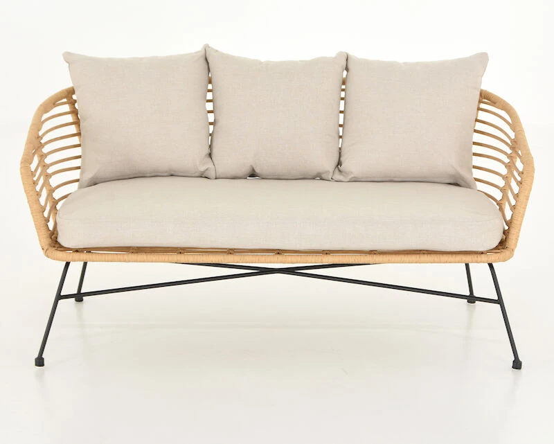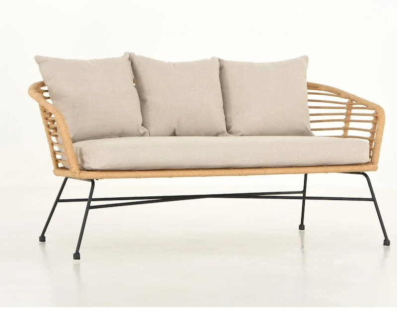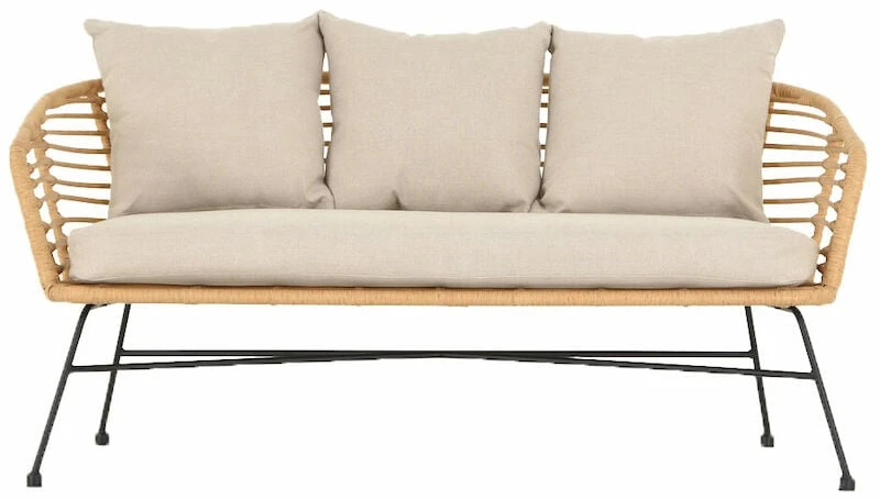 Skandinaaviseen tyyliin sopivalla Envy Kaja sohvalla sisustat tyylikkäästi kodin ulkotiloja. Sohvassa on hiekanväriset pehmusteet. Mustaksi maalattu teräksinen runko, kauniin vaalea polyrottinkinen istuinosa. Helppohoitoinen ja kestävä sohva.