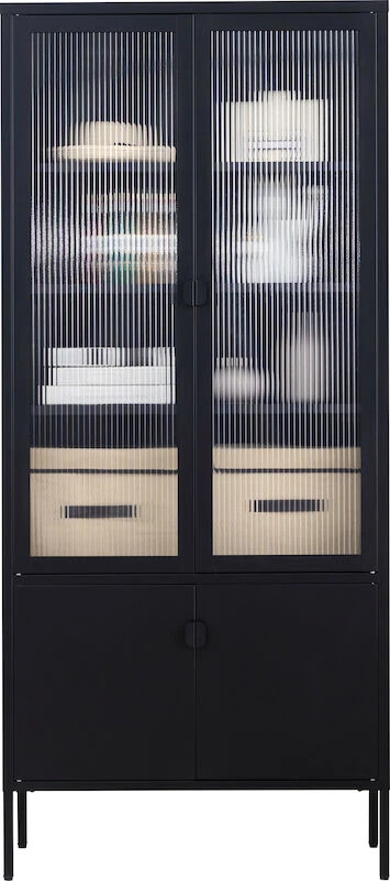 Tyylikäs ja korkea Carbon vitriini on metallia ja sen lasit ovat kaunista karkaistua huurre aaltolasia. Kokonaisuus on moderni ja upea. Vitriinin sisällä on kolme säädettävää välihyllyä, joista jokainen on 79,6 cm leveä ja 30 cm syvä. Yksi hylly kestää painoa 15 kg, eli vitriiniin sopii kauniisti esille kirjoja ja koriste-esineitä. Jalat ovat säädettävät. Vitriini on seinään kiinnitettävä.