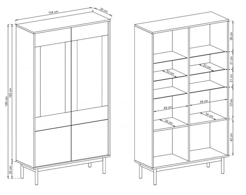 Lasihylly ylin: leveys 49 cm, syvyys 33 cm , korkeus 38 cm.