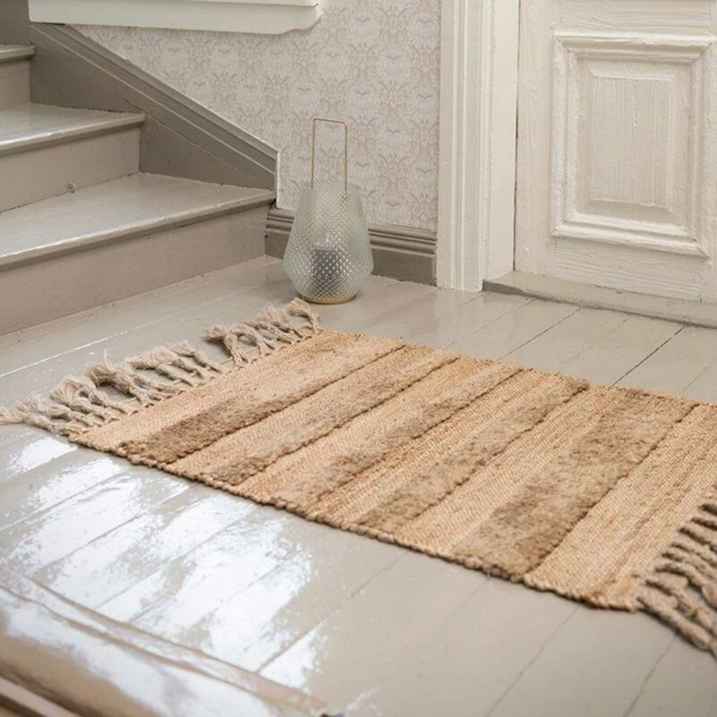 Fanni K Kaiho on ihana pienikokoinen hamppumatto. Luo matolla kodikasta tunnelmaa eteiseen tai asettele sängyn vierelle makuuhuoneeseen. Matto on paksu ja tuntuu jalan alla miellyttävältä. Matossa vuorottelee raitoina erilaiset tekstuurit ja päädyissä on palmikkohapsut.