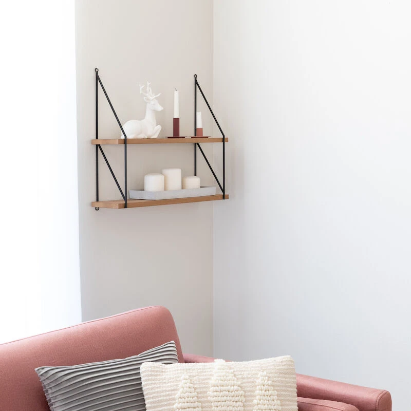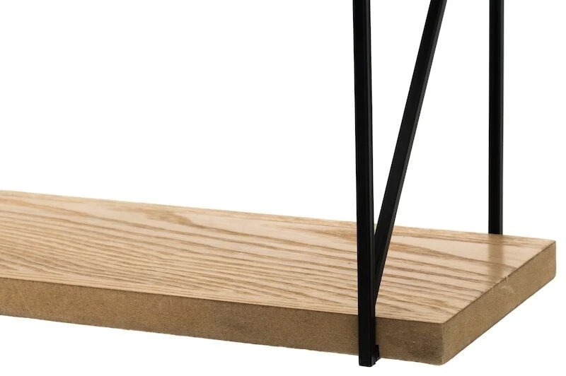 Tyylikäs ja käytännöllinen seinähylly säilöö kodin kauniit esineet näyttävästi. Kaunis luonnollisen puunvärin ja mustan yhdistelmä on moderni ja ryhdikäs.