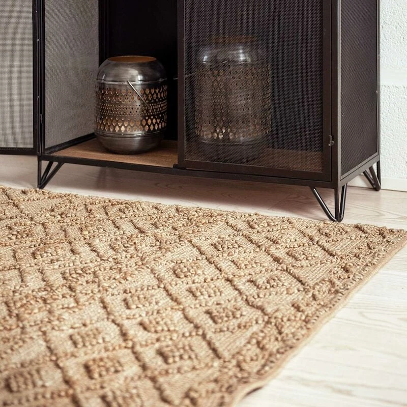 Fanni K Vanaja juuttimaton upea kuviointi syntyy kohokuvioista. Matto on tyylikäs ja luonnonläheinen, lämminhenkinen lisä sisustukseen. Matto sopii myös ulkotiloihin, kuten parvekkeelle ja terassille. Tahrat puhdistuvat matosta helposti kostealla liinalla pyyhkimällä. Paino 2.000 g/m2.