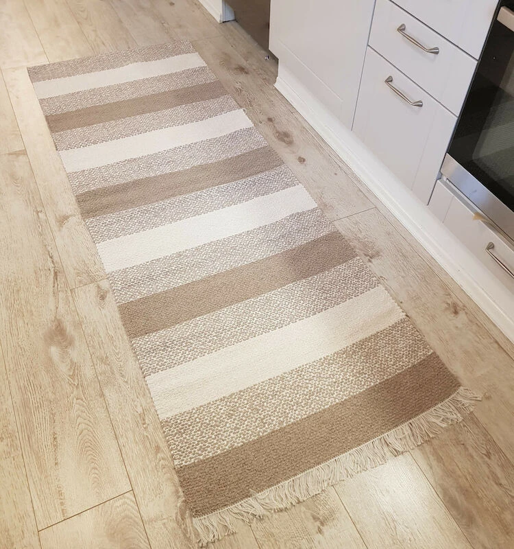 Mummolan mieleen tuova Helmi matto on ihanan perinteinen raitamatto. 50% puuvillasta ja 50% muovista koostuva matto soveltuu hyvin niin eteiseen, keittiöön kuin katetulle terassille tuomaan kodinomaista tunnelmaa. Matto on kevyt rakenteinen ja helppo hoitoinen. Tilaa itsellesi yksi tai useampi ja ihastu!