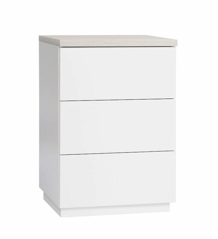 Moderni ja laadukas, kotimainen Anton vitriini on valmistettu ja suunniteltu Suomessa. Runko on valmistettu MFC-kalustelevystä. Laatikot valmistettu mdf-levystä. Laatikoissa laadukkaat push-open mekanismit. Tuote toimitetaan valmiiksi kasattuna. ainoastaan sokkeli irrallaan. Huom! Kuvasta poiketen valkoinen/saarni värissä sokkeli on valkoinen.