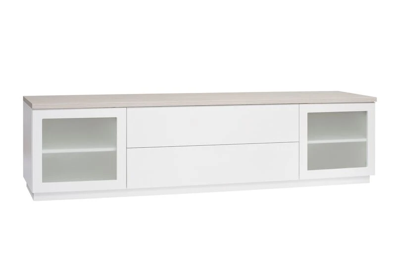 Moderni ja laadukas, kotimainen Anton tv-taso on valmistettu ja suunniteltu Suomessa. Tv-tason runko on valmistettu MFC-kalustelevystä. Laatikot ja ovet valmistettu mdf-levystä. Tv-tasossa on kaksi laatikkoa ja kaksi lasiovea hyllyillä, joiden korkeus on säädettävissä. Laatikoissa ja ovissa laadukkaat push-open mekanismit. Ovien lasi on maitolasia. Tuote toimitetaan valmiiksi kasattuna. Huom! Kuvasta poiketen valkoinen/saarni värissä sokkeli on valkoinen. Toimitetaan sokkeli irrallaan, muuten valmiiksi kasattuna.