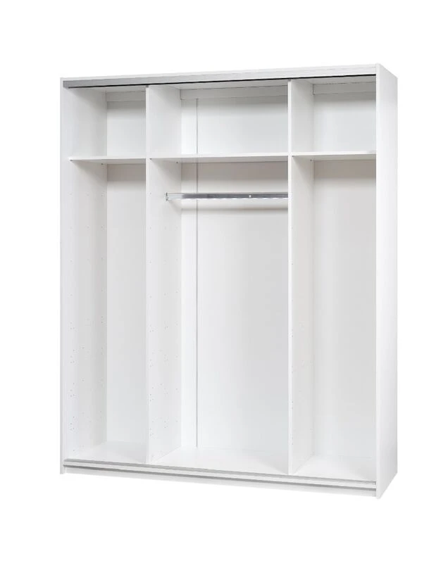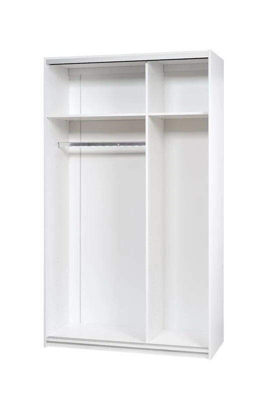 Ida vaatekaappi liukuovilla, jotka ovat valkoiseksi maalattua lasia. Upea ja käytännöllinen vaatekaappi, johon saatavilla useita erilaisia lisävarustepaketteja. Ida liukuovikaapit valmistetaan Suomessa. Vakiona tämän komeron ovien takaa löytyy kiinteät ylähyllyt ja valohenkaritanko, joka tuo vaatekaappiin upeasti valoa. Valotangossa on patterit, jotka syttyy, kun oven avaa ja sammuu automaattisesti. Ida liukuovikomeroon voit valita 120 tai 180 leveyden ja komeron sisälle haluamasi lisävarusteet. Katso yhteen kuuluvat tuotteet osta lisäksi-tuotteista.