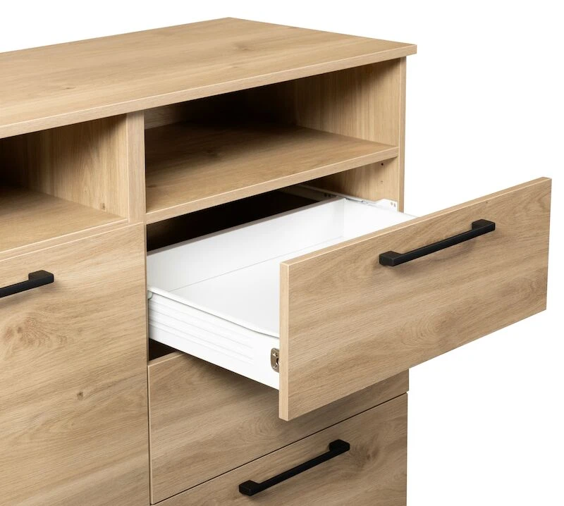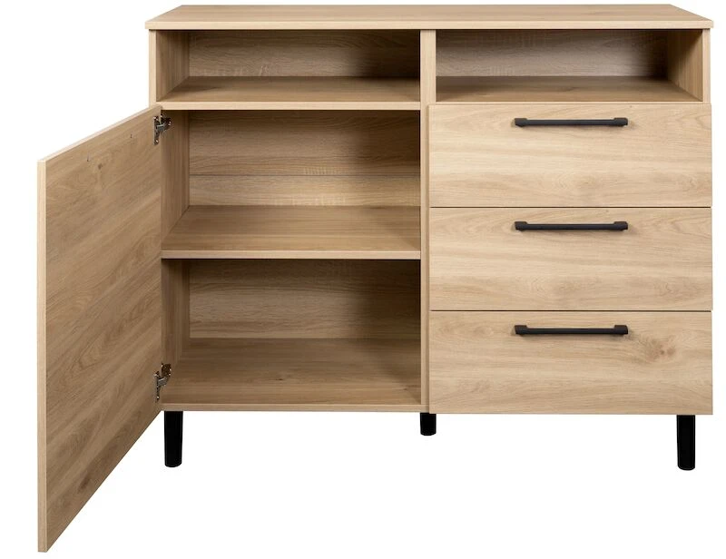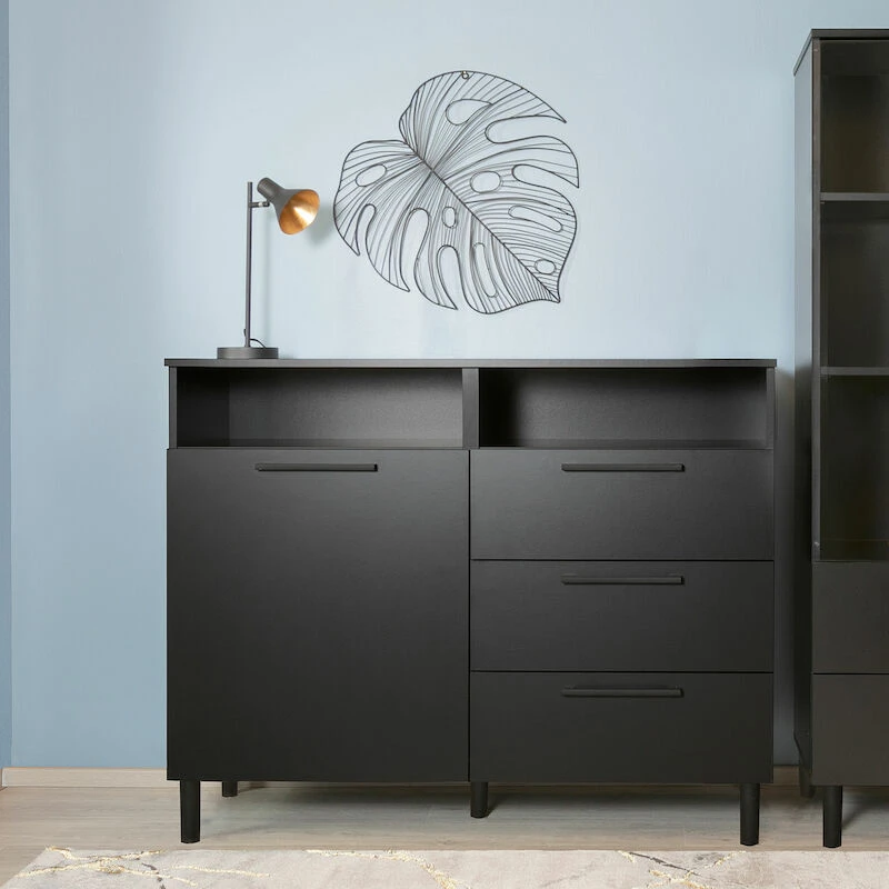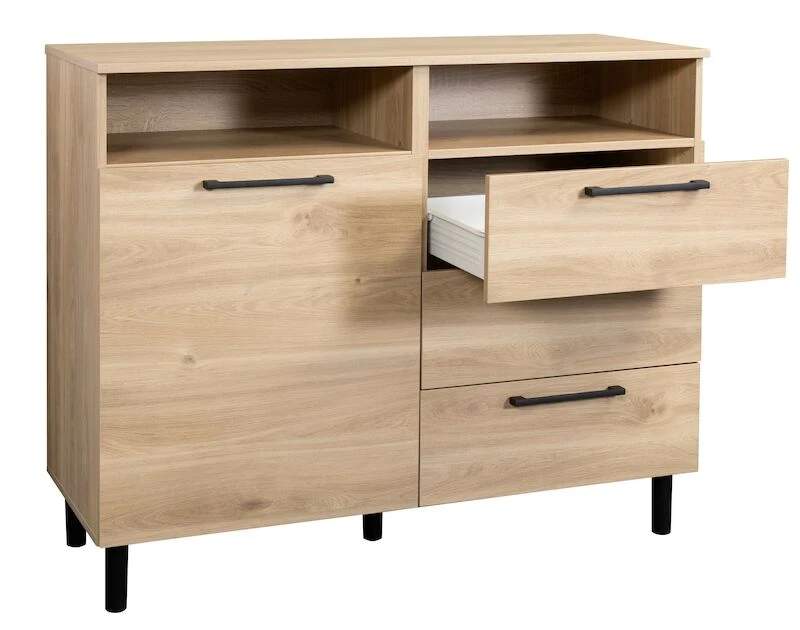 Suomessa valmistettu Solo senkki on moderni ja suoralinjainen. Materiaalina on melamiinipinnoitettu, 16 mm kalustelevy. Senkissä on kolme avattavaa laatikkoa, yksi kaappi ja kaksi avohyllyä. Kaapissa on säädettävä irtohylly, joka on mahdollista säätää kolmeen eri korkeuteen. Laatikoissa on laakeroidut, metalliset liukukiskot ja kaapin takana hyllylevy. Toimituksen mukana selkeä kasausohje.