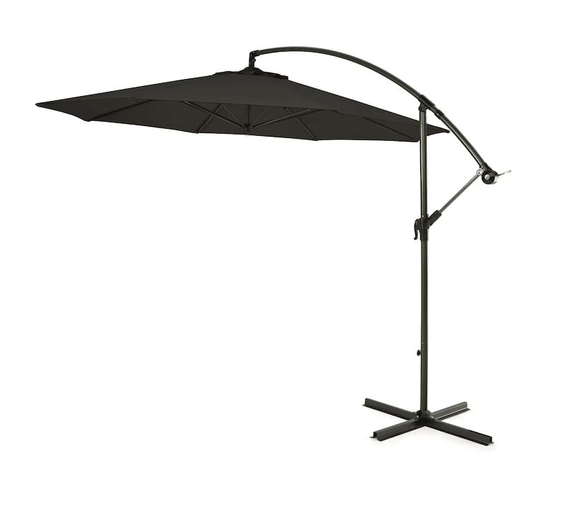 Hillerstorp aurinkovarjo sivumalli Ø 3 m on käytännöllinen ja tukeva varjo tyylikkäillä väreillä. Varjo on helppokäyttöinen, veivillä varjon saa kasaan ja nostettua suojaksi. Varjoa voi kallistaa, mutta korkeutta ei voi säätää. Ristikkojalka tulee mukaan, joka helpottaa varjon kiinittämistä terassiin tai voit ostaa erilliset lisäpainot jalkaan. Jalkaristikon koko on 100 cm x 100 cm. Varsi on kiinni pulteilla jalkaristikossa. Aurinkovarjon varren paksuus 48 mm. Ristikkojalka vaatii painoa päälle 80 kg.