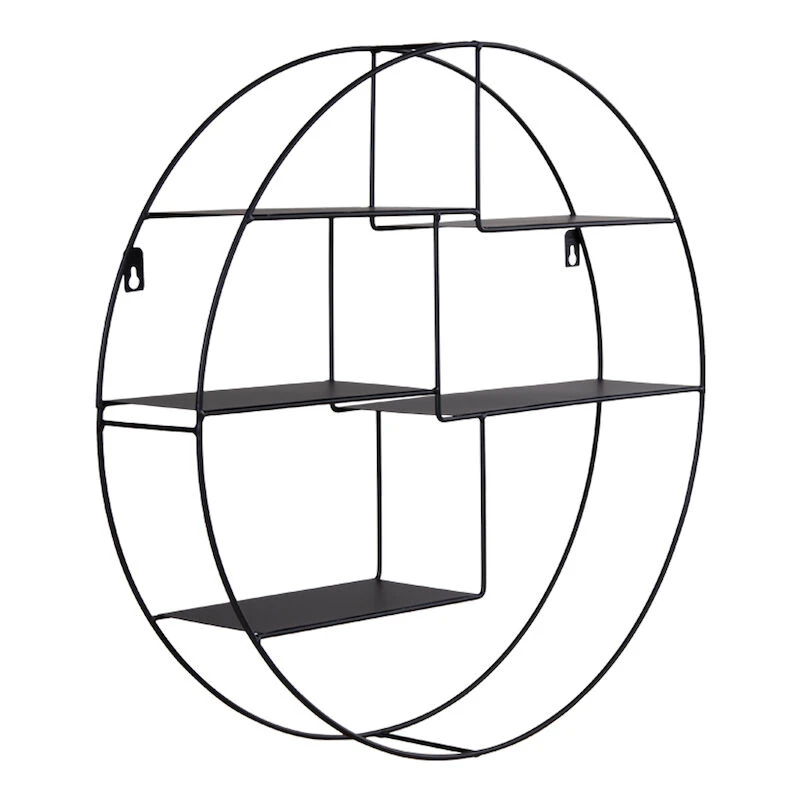 Pyöreä House Nordic Genk seinähylly antaa uutta ilmettä sisustukseen. Hyllyssä pieniä tasoja eri korkeuksilla, joihin saa kauniisti pienet esineet esille. Materiaalina mustaksi maalattu metalli. Seinähylly kiinnitetään seinään kahdella ruuvilla, hinta ei sisällä kiinnitykseen tarvittavia ruuveja. Tuote toimitetaan valmiiksi kasattuna.