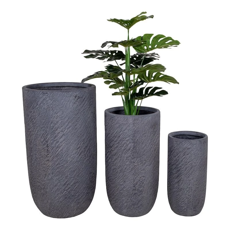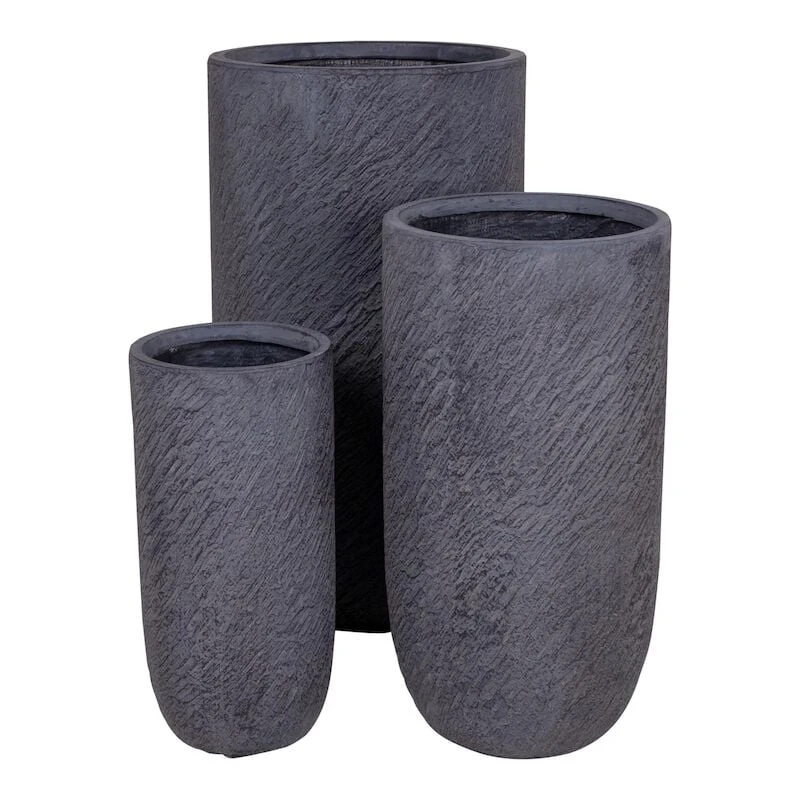 Upea House Nordic Hamilton ruukkusetti sisältää kuvan kolme ruukkua. Materiaalina kuitukivi ja väri harmaa. Pienimmän ruukun mitat: Halkaisija 24 cm ja korkeus 49,5 cm. Keskikokoisen ruukun mitat: Halkaisija 34 cm ja korkeus 64 cm. Isoimman ruukun mitat: Halkaisija 43,5 cm ja korkeus 79 cm. Sopivat sekä sisä- että ulkokäyttöön. Kukat on hyvä istuttaa esim. istutusruukkuihin koska materiaalit imevät ajan kanssa vettä itseensä, eivätkä näin ollen ole vedenpitäviä. Ruukku tulee talvisin säilyttää sisätiloissa.