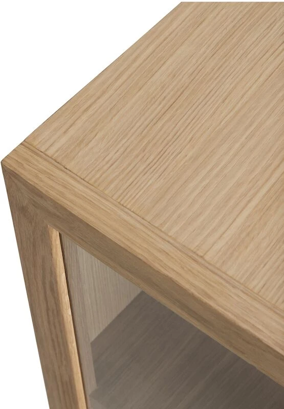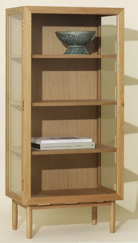 Kaunis Skandinaaviseen sisustukseen sopiva tammijalkainen Hübsch Kaiser vitriini. Käytännöllinen ja kaunis mihin tahansa kodin tilaan, sisällä hyvin säilytystilaa. Tähän vitriiniin saat kauniisti esille esimerkiksi koriste-esineet, astiat ja valokuvat. Vitriinissä tammiviilutettu kalustelevyrunko ja jalat tammipuuta. Vitriinin sivuilla ja ovissa on kirkas lasi. Lasioven takana 3 kiinteää hyllyä.