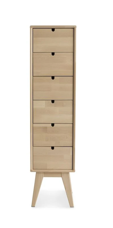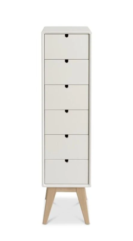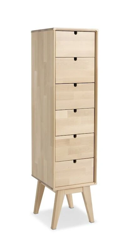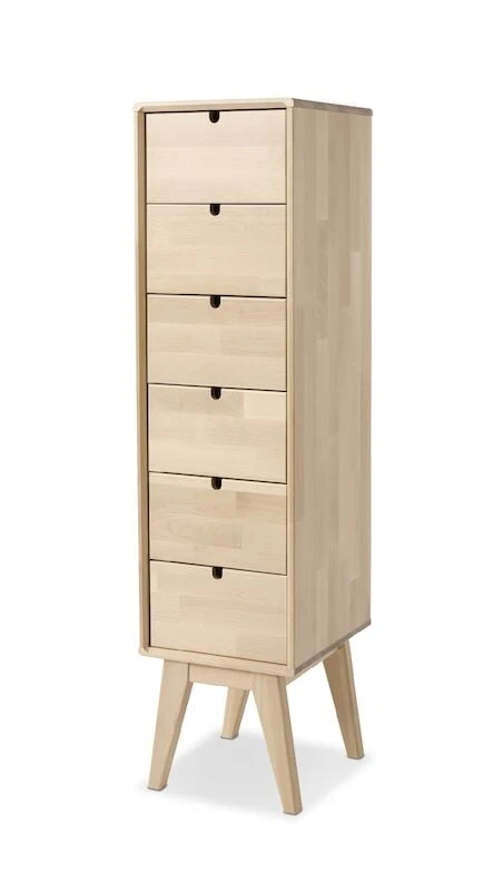 Kestävä ja tyylikäs Notte korkea lipasto. Materiaalina massiivikoivu, väreinä koivu ja valkoiseksi maalattu, jossa koivun väriset jalat. Laatikoissa metalliset kuulalaakeroidut liukukiskot. Tuotesarjan tuotteet ovat siroja ja siinä on kauniita yksityiskohtia. Notte tuotesarja on kotimainen, se on valmistettu Kiteen Huonekalutehtaalla. Lipasto toimitetaan pahviin pakattuna, muuten kasattuna, mutta jalkaosa on irrallaan.