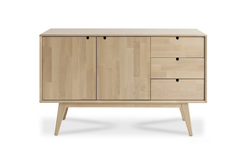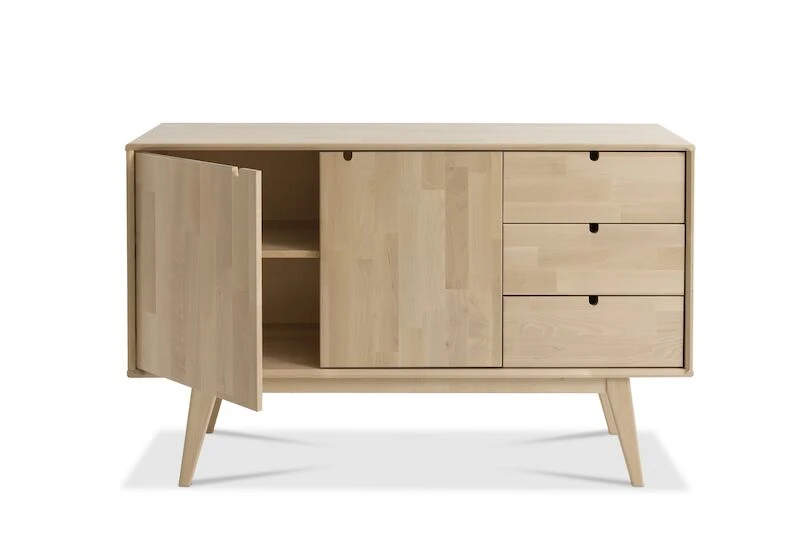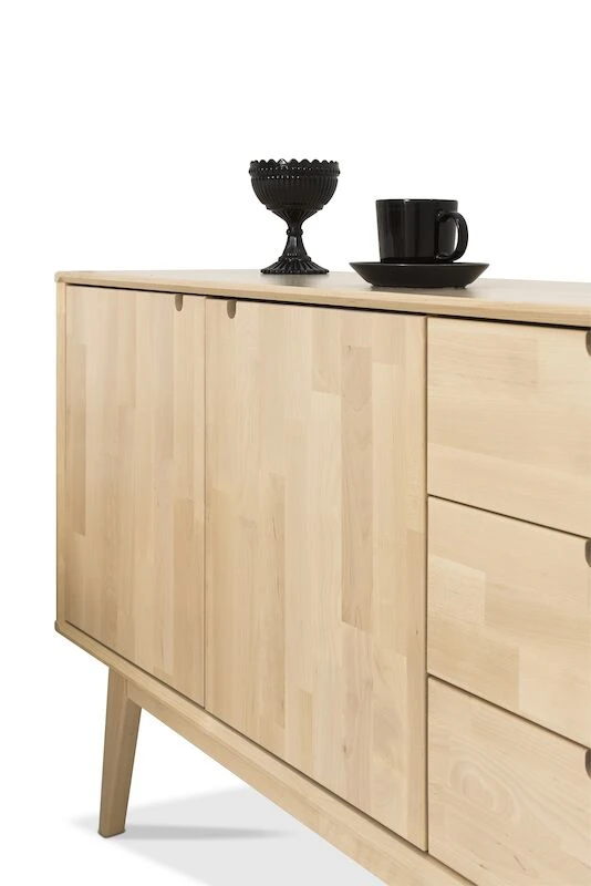 Kestävä ja tyylikäs Notte senkki. Materiaalina massiivikoivu, väreinä koivu ja valkoiseksi maalattu, jossa koivun väriset jalat. Laatikoissa metalliset kuulalaakeroidut liukukiskot. Tuotesarjan tuotteet ovat siroja ja siinä on kauniita yksityiskohtia. Notte tuotesarja on kotimainen, se on valmistettu Kiteen Huonekalutehtaalla. Notte senkin kaapissa olevien hyllyjen korkeus on23cm ja leveys 37cm. Laatikoiden korkeus on 13cm, leveys 36cm ja syvyys 30cm.
