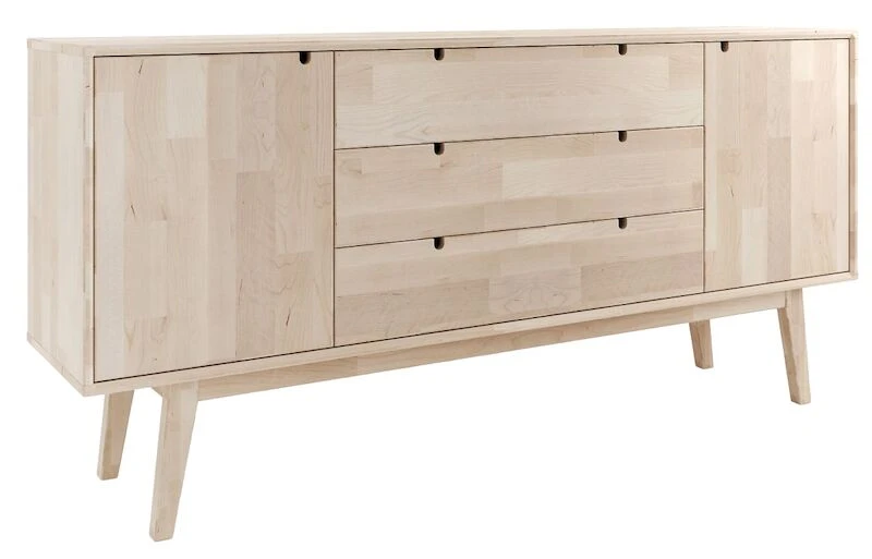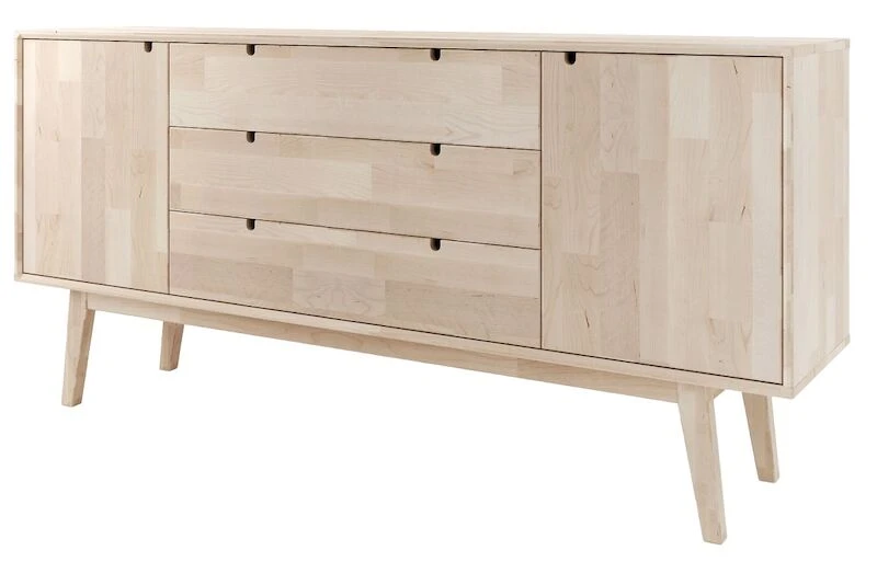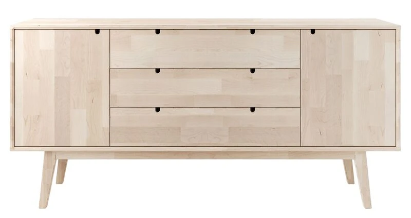 Ajaton ja erittäin laadukas Kiteen Notte senkki. Materiaalina massiivikoivu, väreinä koivu ja valkoiseksi maalattu, jossa koivun väriset jalat. tuotesarjan tuotteet ovat siroja ja niissä on kauniita yksityiskohtia. Tuotesarja on kotimainen ja se on valmistettu Kiteen Huonekalutehtaalla. Notte senkissä on kaksi kaappia joissa molemmissa on yksi säädettävä hyllylevy. Keskellä on kolme leveää laatikkoa laadukkailla metallisilla kuulalaakeroiduilla liukukiskoilla.