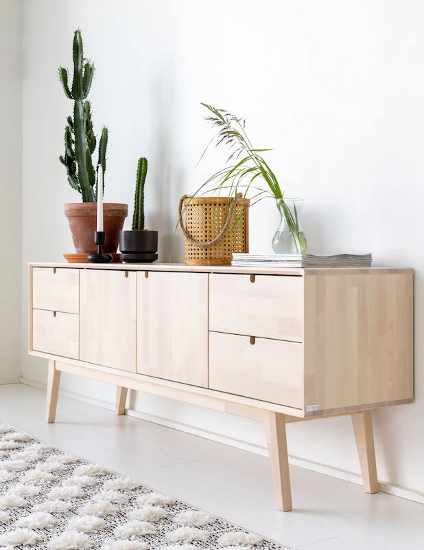 Tyylikäs, siro ja pieniä yksityiskohtia sisältävä, kotimainen Notte tv-taso. Notte tuotesarja on valmistettu massiivikoivusta Kiteen Huonekalutehtaalla. Notte tv-taso toimitetaan asiakkaalle valmiiksi elementtikasattuna, jalkaosa irrallaan. Notte tv-tason taustalevy on koivuvaneria, joka ei sisällä sähköjohdoille reikiä tai aukkoja valmiina, vaan pääset tekemään ne itse haluamillesi kohdille tai jättää tekemättä kokonaan. Jalkakehikon väri on aina lakattu koivu. Vapaa tila tv-tason alla on 20cm. Laatikoissa metalliset, kuulalaakeroidut liukukiskot. Toimituksen mukana kasausohje