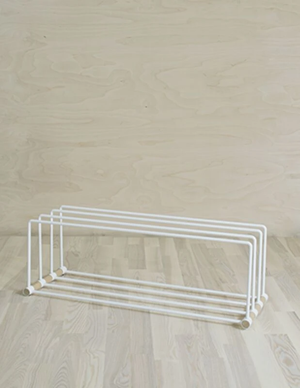 Moderni ja pelkistetty Ilma kenkäteline. Materiaalina pulverimaalattu metalli sekä käsittelemätön koivu. Värivaihtoehtoina musta ja valkoinen. Kaksi leveysvaihtoehtoa: 60 cm ja 80 cm. Ilma tuotesarjan tuotteet valmistetaan Suomessa, Porissa ja sen on suunnitellut suunnittelutoimisto marjajohanna.