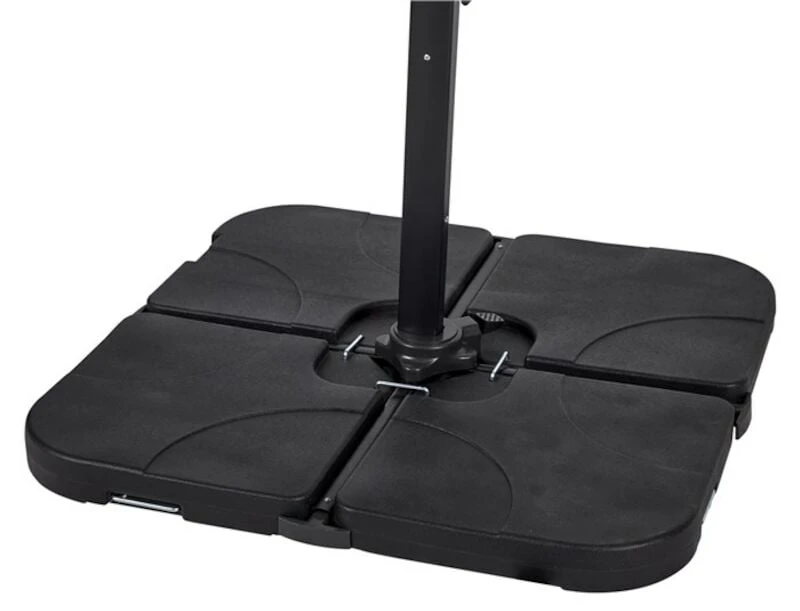 Kätevä hiekalla tai vedellä täytettävä sivuvarjon paino. Osat saa kiinnitettyä tukevasti toisiinsa. Paino vedellä täytettynä 52 kg ja hiekalla 72 kg.