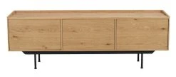 Tyylikäs Rowico Brewerton tv-taso tuo kodikasta tunnelmaa sisustukseen. Tv-tason värisävynä on villitammi, jossa näkyy aidolle tammelle tyypillisesti oksankohdat sekä kaunis puunkuviointi. Kauniina yksityiskohtana tasossa on hieman korotettu takalaita. Moderni jauhemaalattu metallijalka keventää kokonaisuutta ja helpottaa siivoamista tason alta. Koko etuosa on valmistettu saman lankun puusta, joka antaa tyylikkään ja yhtenäisen kokonaisvaikutelman. Ovet avautuvat push-open mekanismilla. Joustavuutta säilytykseen tuo jokaisen oven takana oleva korkeussäädettävä hylly sekä johtojen läpivientiaukko. Hyllyä voi säätää kolmeen eri korkeuteen. Tv-taso soveltuu käytettäväksi myös matalana senkkinä.