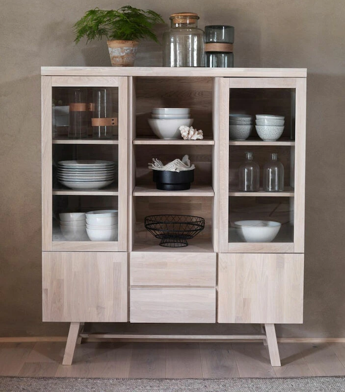 Todella upea ja laadukas Rowicon massiivitamminen Brooklyn vitriini. Vitriinissä on monipuoliset ja runsaat säilytystilat pehmeästi sulkeutuvilla laatikoilla ja ovilla. Tämä vitriini on valmistettu 100% FSC®-sertifioidusta puusta. Levitetyt jalat viimeistelevät vitriinin ulkonäön.