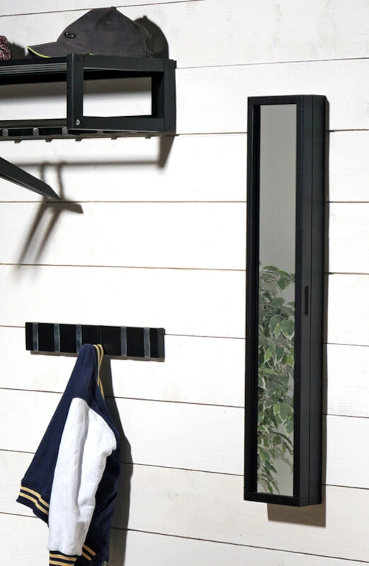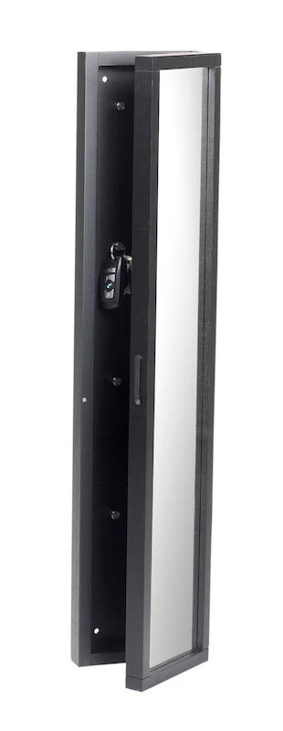 Käytännöllinen ja tilava Rowico Confetti avainkaappi toimii säilytystilan lisäksi eteispeilinä. Kaapissa pysyy avaimet hyvin järjestyksessä, sillä saranoidun peilioven takana on tilavasti yhteensä 8 metallikoukkua avaimille. Tammen värinen avainkaappi on pintakäsitelty öljyllä, muissa väreissä on lakkapinta.