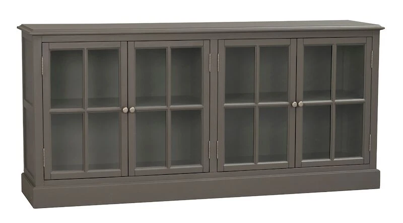 Rowico Lorient senkki on muotoilultaan kauniin klassinen. Lasiovien takana reilusti säilytystilaa esimerkiksi koriste-esineille ja kirjoille. Materiaalina mänty.