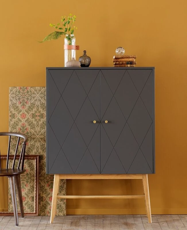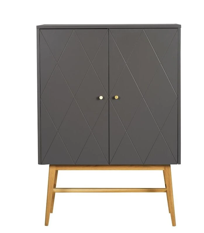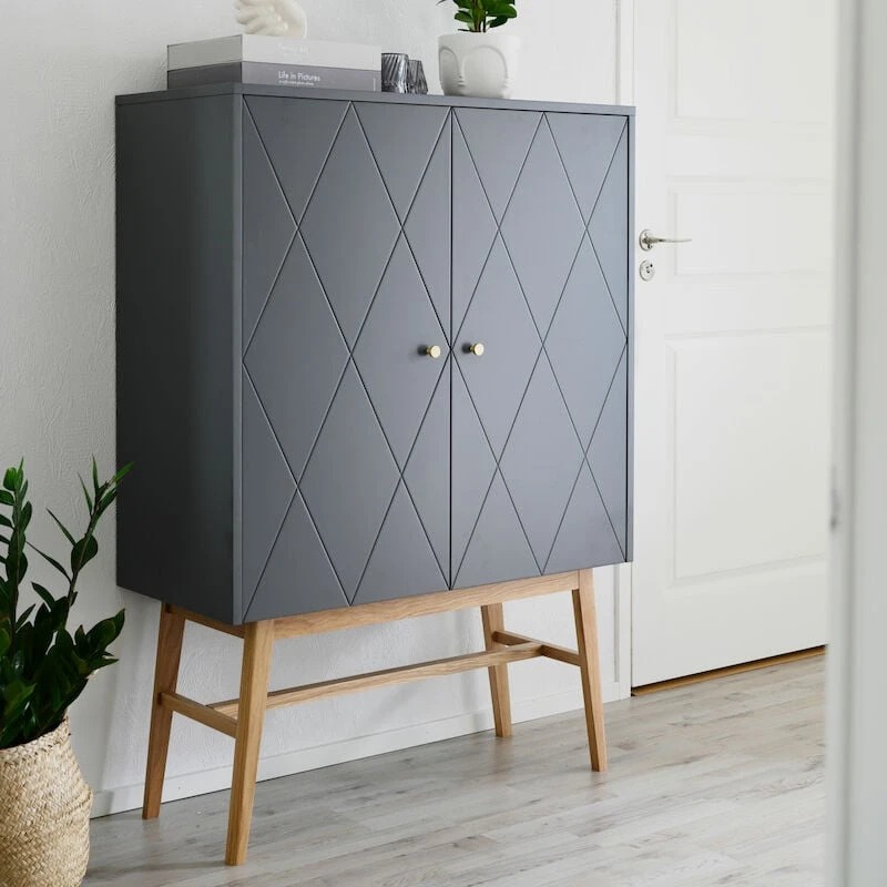 Tyylikäs Rowico Rosswood kaappi piristää sisustustasi boheemilla ilmeellään. Valkoinen tai harmaa kaappi tammisilla jaloillaan ihastuttaa. Kaapin ovissa oleva samiakkikuvio on kaunis yksityiskohta. Kaappi kätkee sisäänsä niin kirjat kuin muut pientarvikkeet. Kaapin voi sijoittaa esimerkiksi olo- tai työhuoneeseen piristämään sisustustasi. Kaappi on pintakäsittelyltään lakattu.