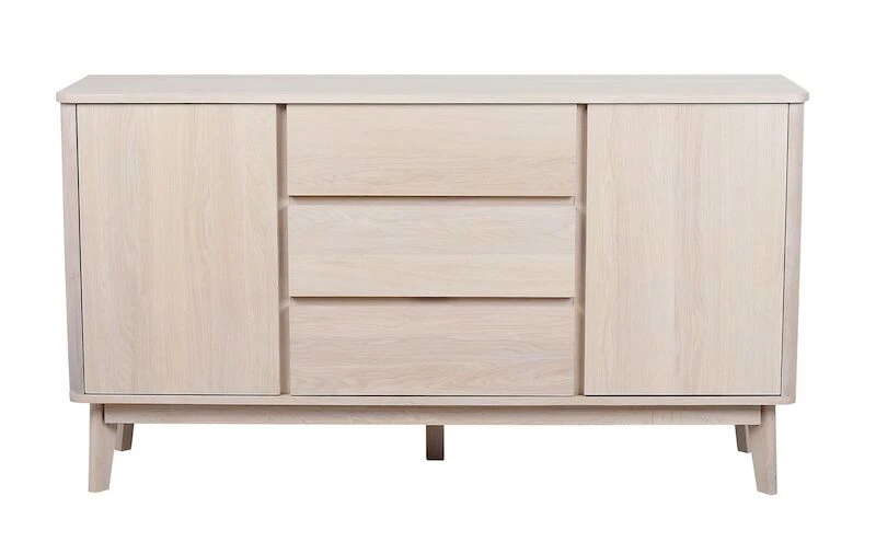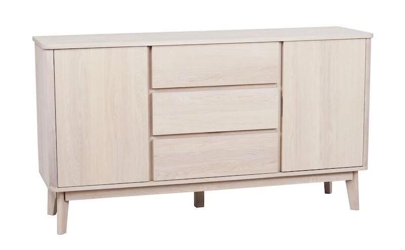 Todella laadukas, massiivitammesta, tammiviilutetusta mdf-levystä ja kalustelevystä valmistettu Rowico Yumi senkki. Laatikoissa on laadukkaat kiskot hidastimilla. Ovissa myös hidastavat saranat, jotka sulkeutuu pehmeästi. Kaapeissa yhdet korkeussäädettävät välihyllyt, joita voi säätää 6,4 cm korotuksilla kolmeen eri asentoon. Hyllyn alin asennuskorkeus on 15 cm pohjalevystä.