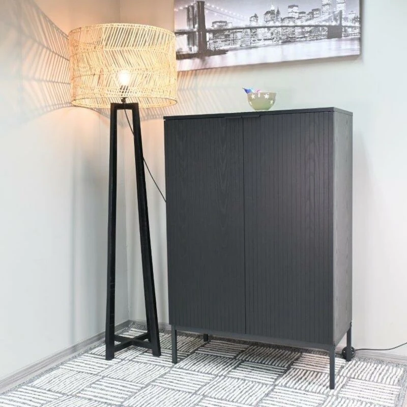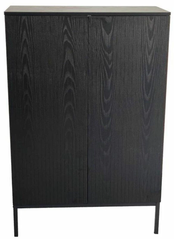 Siera on tyylikkään ja elegantin omaava kalustesarja. Yhdistelemällä sarjan tuotteita saa yhtenäisen ilmeen kotiin. Tässä korkeassa kaapissa on saranaovet, joiden takana on kaksi kiinteää hyllyä. Kaappiin saa kauniisti piiloon tavaroita mitä tarvitset kotona välittömässä läheisyydessä, mutta et halua pitää esillä. Suosittu musta väri yhdistettynä metallisen kahvan yksityiskohtaan luo täydellisen kokonaisuuden. Materiaali pinnoitettua MDF-Levyä, mustaksi maalattu metallinen kehäjalka ja tyylikäs musta metallinen vedin. Sopii loistavasti moderniin sisustukseen, johon halutaan tyylikästä tummaa ilmettä. Kaappi suositellaan kiinnittämään seinään, kiinnitystarvikkeet tähän kuuluvat pakkaukseen.