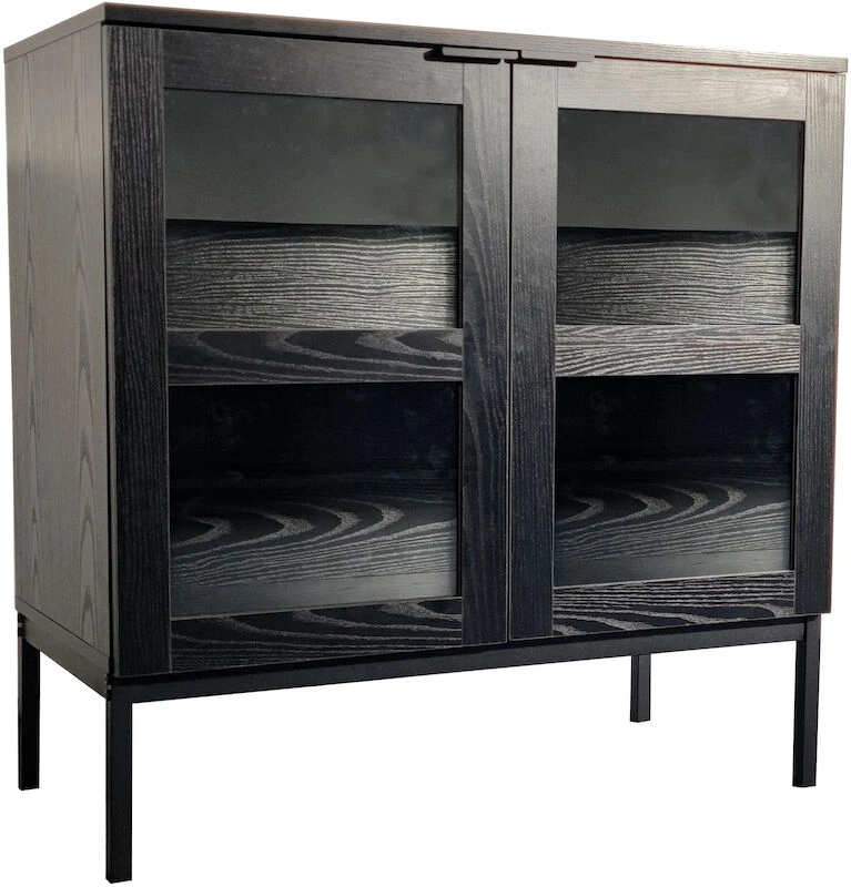 Siera on tyylikkään ja elegantin omaava kalustesarja. Matala lasiovinen vitriini sopii hyvin esim. keittiöön. Saat vitriiniin esille kauniisti tarjoiluastiat tai muuten kauniit astiastot. Vitriini on myös lastenhuoneeseen sopiva moderni nukkekoti. Suosittu musta väri yhdistettynä metallisen kahvan yksityiskohtaan luo täydellisen kokonaisuuden. Materiaali pinnoitettua MDF-Levyä, mustaksi maalattu metallinen kehäjalka ja tyylikäs musta metallinen vedin. Sopii loistavasti moderniin sisustukseen, johon halutaan tyylikästä tummaa ilmettä. Lasiovien takana on yksi kiinteä hylly. Vitriini suositellaan kiinnittämään seinään, kiinnitystarvikkeet tähän kuuluvat pakkaukseen.