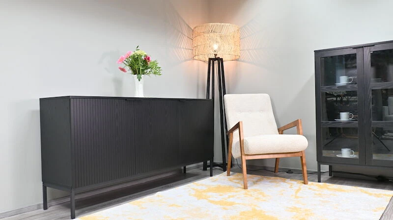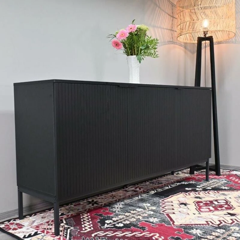 Siera on tyylikkään ja elegantin omaava kalustesarja. Senkki on paitsi tyylikkään näköinen, myös erittäin tilava. Senkin avulla saat esim. olohuoneeseen tai makuuhuoneeseen upeaa modernia ilmettä sekä säilytystilaa. Tasolle saa kauniisti esille tarkoin valittuja koriste-esineitä. Suosittu musta väri yhdistettynä metallisen kahvan yksityiskohtaan luo täydellisen kokonaisuuden. Materiaali pinnoitettua MDF-Levyä, mustaksi maalattu metallinen kehäjalka ja tyylikäs musta metallinen vedin. Sopii loistavasti moderniin sisustukseen, johon halutaan tyylikästä tummaa ilmettä. Senkissä on saranaovet ja jokaisen oven takana yksi korkeussäädettävä hylly. Hyllyn ollessa keskikohdassa, on hyllyväli 28 cm. Senkki suositellaan kiinnittämään seinään, kiinnitystarvikkeet tähän kuuluvat pakkaukseen.