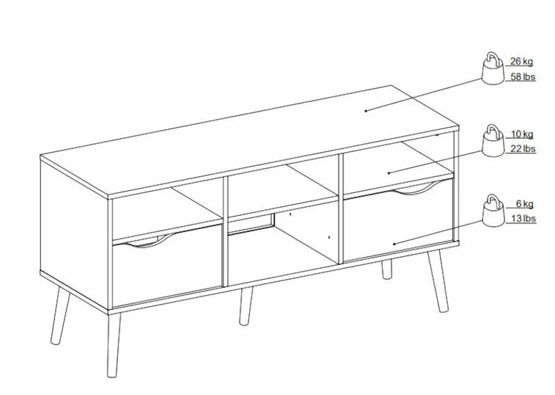 Tason kantavuus 26 kg; avohyllyn kantavuus 10 kg; kaapin kantavuus 6 kg
