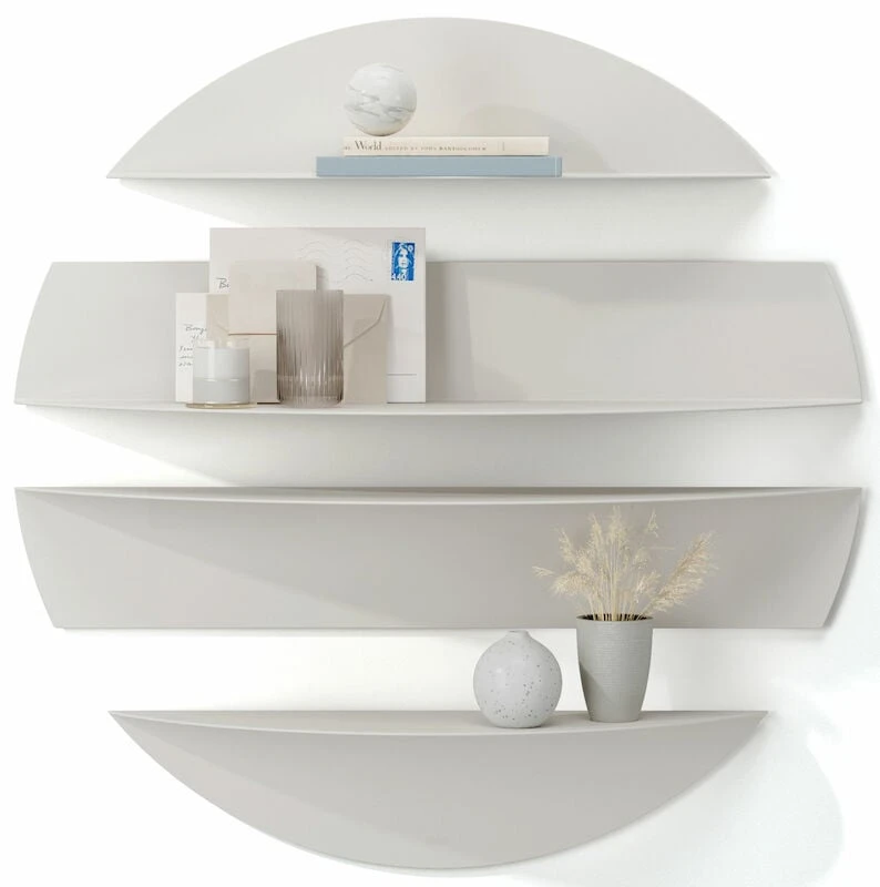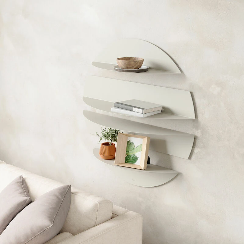 Umbra Solis seinähyllyt on valmistettu taivutetusta metallista ja niitä voi käyttää sisustuselementtinä sekä pientavaroiden säilytykseen. Yhdessä asennettuna Solis muodostaa ympyrän, mutta asettelu mahdollisuudet ovat rajattomat. Jokaisen hyllyn voi asentaa ylösalaisin. Pienen hyllyn kantavuus on 4,5 kg ja ison 6,8 kg. Materiaali tuo tuulahduksen useampaa tyyliä kotiisi, niin japandia kuin modernia skandinaavista henkeäkin.