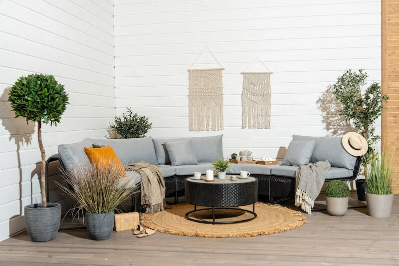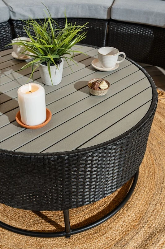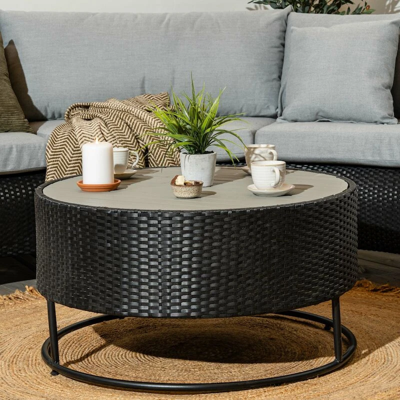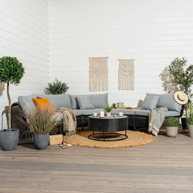 Eira sohvaryhmä on moderni kaarevan muotoinen sohvaryhmä ulkokäyttöön terassille. Runko on terästä, joka on mustaksi pulverimaalattu. Mukana tulee ihanat vaaleat pehmusteet ja pyöreä sohvapöytä. Eira sopii kotiin, jossa halutaan seurustella vieraiden kanssa kesällä ulkona ja nauttia kahvihetkistä ja miksei lounaastakin. Hanki pyöreä ulkokäyttöön sopiva juuttimatto ja pari betonijakkaraa ja saat kauniin kokonaisuuden kotiisi. Sohva on helppo kasata, osat asetetaan vierekkäin ja tyynyt päälle ja sohva on valmis käytettäväksi! Jaloissa 1 cm:n säätömahdollisuus.