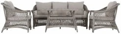 Elo sohvaryhmän muotoilu vaalii perinteistä puutarhakalusteiden tyylisuuntaa. Elo ryhmä tuo kesällä ulkona oleskeluun helppoutta ja mukavuutta. Tyynyt kiinnitetään sohvaan ja tuoleihin solmimalla, joten ne pysyvät hyvin paikallaan ja ovat helppo siirtää sateen suojaan tarpeen tullen.