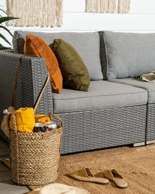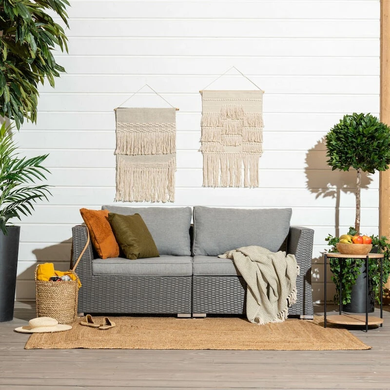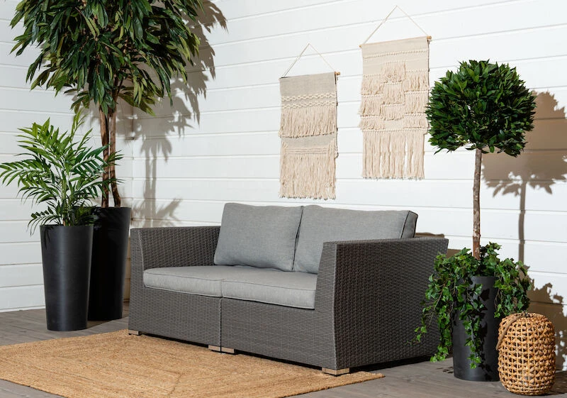 Kevyt, kestävä ja tyylikäs 2-istuttava ulkosohva koostuu kahdesta kulmamoduulista, jotka on kiinnitettynä toisiinsa kätevillä kiinnikkeillä. Sohvassa on muhkeat pehmusteet, joiden päälliset on irroitettavissa ja pestävissä. Kangas on laadukas ja vettä hylkivä. Sohva tuo istumatilaa ja siinä on mukava viettää kesäpäiviä. Ostamalla lisää moduuleja Hede sarjasta, saat laajennettua tuotetta helposti.
