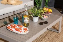 Kallas sohvaryhmä on erinomainen valinta terassille, patiolle tai parvekkeelle. Tämä tyylikäs sohvaryhmä on suunniteltu ulkokäyttöön ja sen runko on valmistettu laadukkaasta jauhemaalatusta alumiinista, joka kestää hyvin sään vaihteluita. Sisältää 3-istuttavan sohvan, 2-istuttavan sohvan, sohvapöydän sekä muhkeat hiekan väriset istuin- ja selkäpehmusteet, joiden päälliset on irroitettavissa ja pestävissä. Pehmusteiden päälliset on verhoiltu kestävällä ulkokäyttöön tarkoitetulla vettähylkivällä polyester kankaalla.