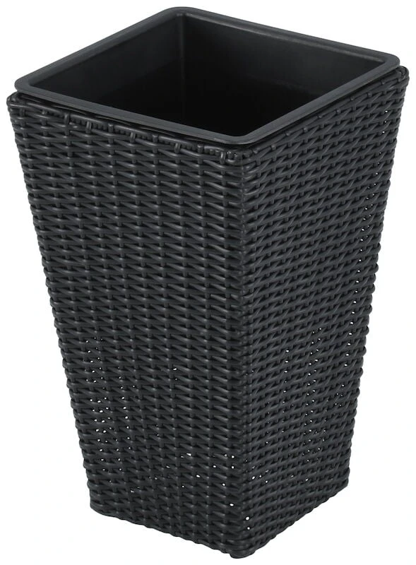 Kartio polyrottinki kukkaruukku ulkokäyttöön. Korkeisiin ruukkuihin saat tehtyä näyttävät kukka-asetelmat, jotka sijoitat esimerkiksi ulko-ovelle vieraita ilahduttamaan. Runko on metallia, punos UV-suojattua polyrottinkia ja istutusastia muovia. Varsinaisen kukkaruukun sisällä on muovinen istutusastia, joka ei ole niin syvä kuin kukkaruukku itse. Tämä helpottaa kukkien istutusta. Kukkaruukun sisällä olevan muovisen istutusastian sisämitat: Leveys 21 cm, syvyys 21 cm ja korkeus 28 cm. Ruukkua voi säilyttää talvisin ulkona, mutta sen pitää olla tyhjä tai se voi jäätyessään haljeta.