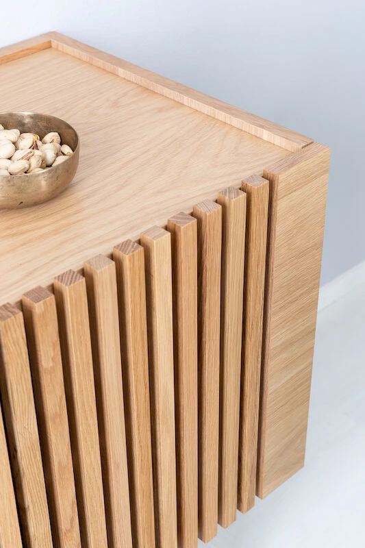 Korte tv-taso on kaunis valinta kotiisi. Mustat metallijalat ja vetimet yhdistettynä upean tammen sävyiseen puukuviointiin luo näyttävän ilmeen sisustukseesi. Taso on valmistettu mdf-levystä ja viilutetusta tammesta. Levyn pinta on viilutettua tammea, jossa näkyy kauniisti aito puun kuviointi. Puun kuviointi ja värisävy vaihtelee tuotteittan, eikä kahta täysin samanlaista tuotetta ole. Tason jaloissa on säädettävät mustat nastat, joiden avulla tason voi hienosäätää suoraan. Korkeutta nastojen avulla ei voi juurikaan säätää.