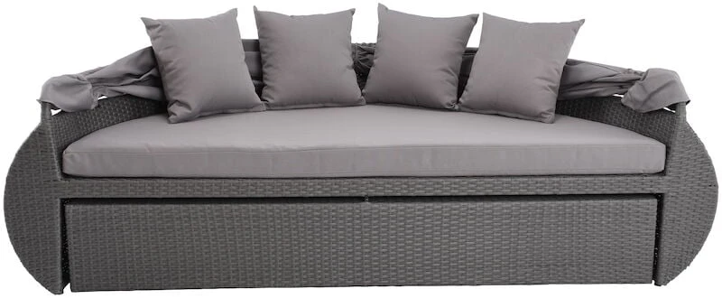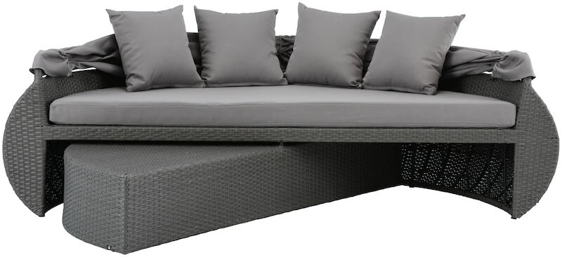 Tässä Lehto aurinkosängyssä on mukava nauttia kesäpäivän lämmöstä. Voit sijoittaa aurinkosängyn pihallesi tai katetulle terassille. Tähän muhkeaan aurinkosänkyyn sopii hyvin useampikin henkilö. Aurinkosänkyyn kuuluu mukaan kaksi erillistä pehmustepatjaa ja neljä irtotyynyä, joiden päälliset on irroitettavissa vetoketjun avulla. Aurinkosängyn takimmaisen patjan paksuus on 8 cm ja etummaisen patjan paksuus on 16,5 cm. Materiaalina on polyesteri. Aurinkosängyn runkomateriaali on polyrottinkia. Aurinkokatoksen voi halutessaan laskea alas. Voit käyttää aurinkosänkyä myös sohvana, kun käännät aurinkosängyn etuosan rungon sisään. Pehmusteet tulee säilyttää sateelta suojassa.