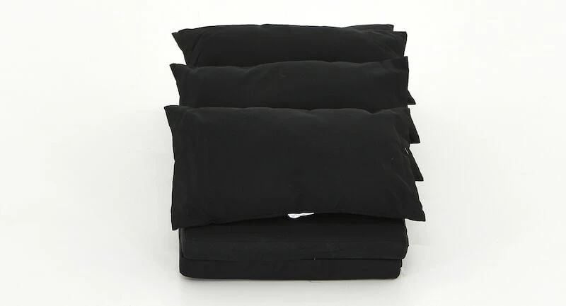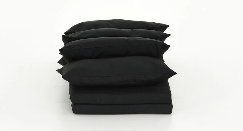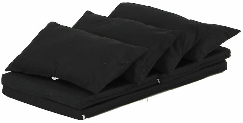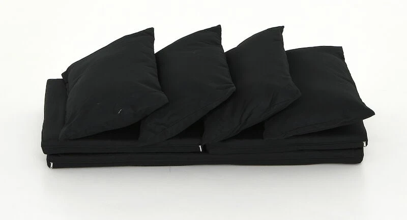 Mustat Long sohvaryhmän pehmusteiden päälliset. Settiin kuuluu 4 irtotyynyä, 2 pienempää istuintyynynpäällistä ja yksi sohvan istuintyynynpäällinen. Irtotyynyissä on sisustyynyt, mutta istuintyynyissä ei ole sisustyynyjä. Istuintyynyjen pitkällä sivulla on vetoketju, josta voit erikseen hankittavan sisustyynyn laittaa sisälle. Kangas ei ole UV-suojattu, joten väri voi haalistua suorassa auringonpaisteessa. Kangas on vettähylkivä, muttei kuitenkaan täysin vedenkestävä. Kastuessaan ulkopehmusteet kannattaa kuivata sopivassa asennossa, jotta kosteus pääsee niistä ulos eivätkä ne homehdu. Ulkotekstiileillä voi helposti muuttaa terassin ilmettä.