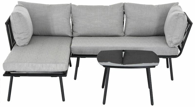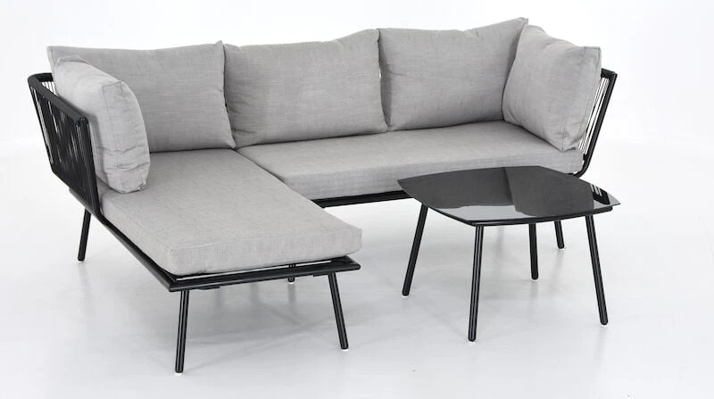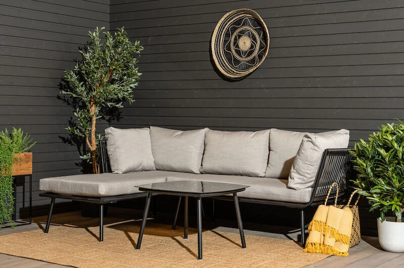 Loviisa divaanisohva ja sohvapöytä on elegantti kokonaisuus. Siro muotoilu ja rungossa käytetty pulverimaalattu teräs sekä kestävä polyrottinki ovat täydellinen yhdistelmä. Polyrottinki on kesäkalusteissa paljon käytetty ja suosittu materiaali sen helppohoitoisuuden ja kestävyyden vuoksi. Mukana tulee ihanat pehmusteet, jotka tuovat istuinmukavuutta niin paljon, ettet haluaisi koko kesänä muualla loikoillakaan! Osta lisäksi torkkupeitto ja voit nauttia päiväunistakin Loviisan kanssa. Divaanisohvan kätisyys ei ole vaihdettavissa.